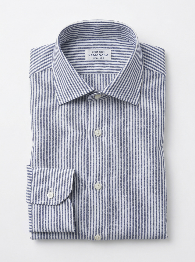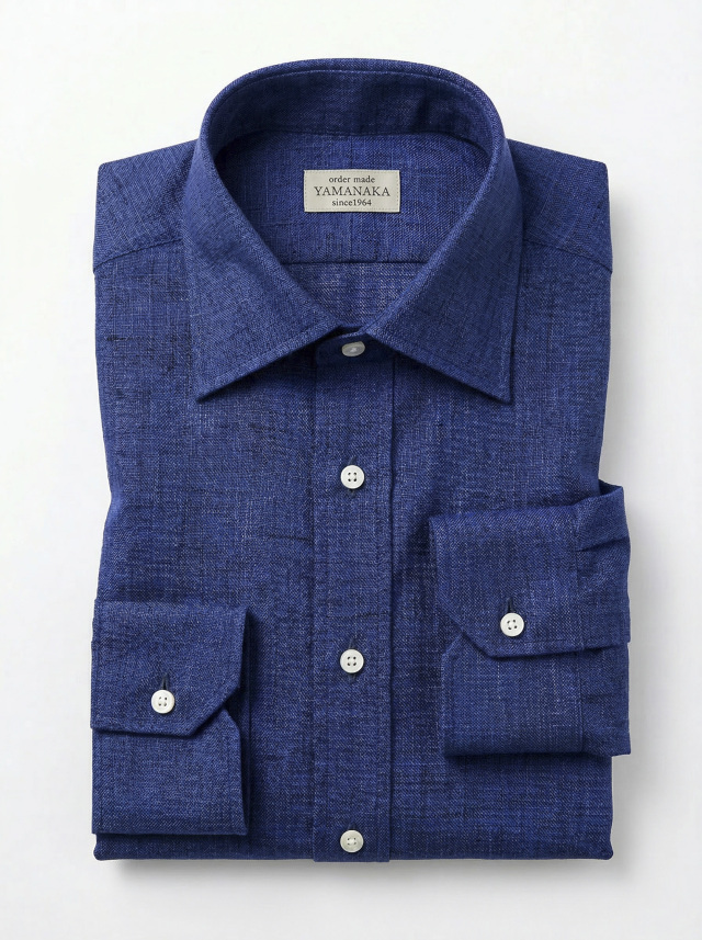 NEW出来上がり価格 23980円~ 2026年4月6日新着生地shirtsman [TEXTA テクスタ] #7800 麻リネンプリントペーズリー・ネイビー 麻リネンの生地にネイビーのペーズリープリント
