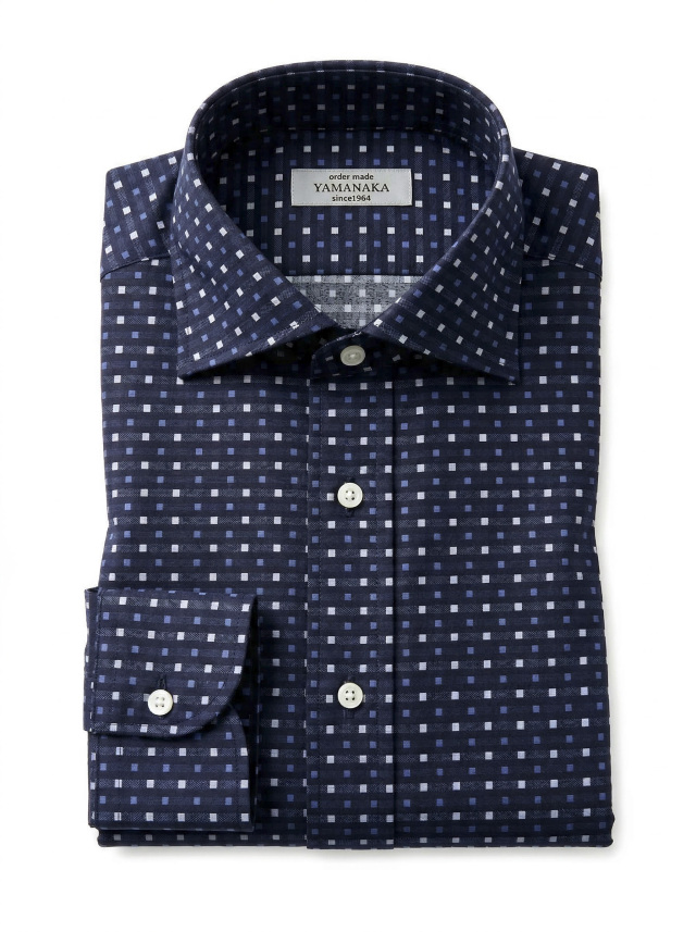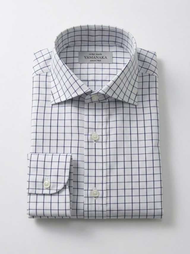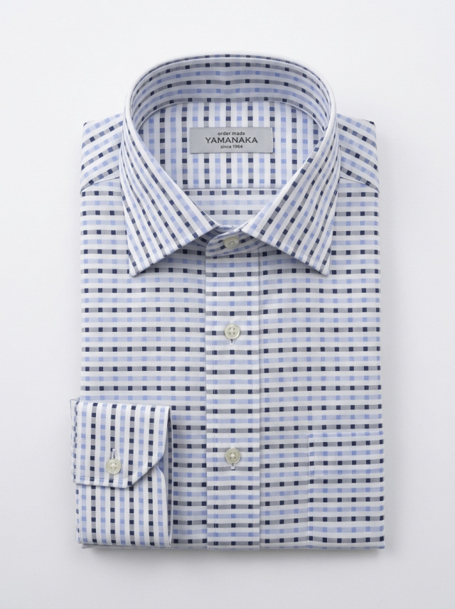 NEW出来上がり価格 22980円~ 2026年4月5日新着生地shirtsman [ゲッツナー] #8364 スクエアドビーホワイトベース-ブルー×ネイビー ホワイトベースにブルーとネイビーのスクエアドビー柄。