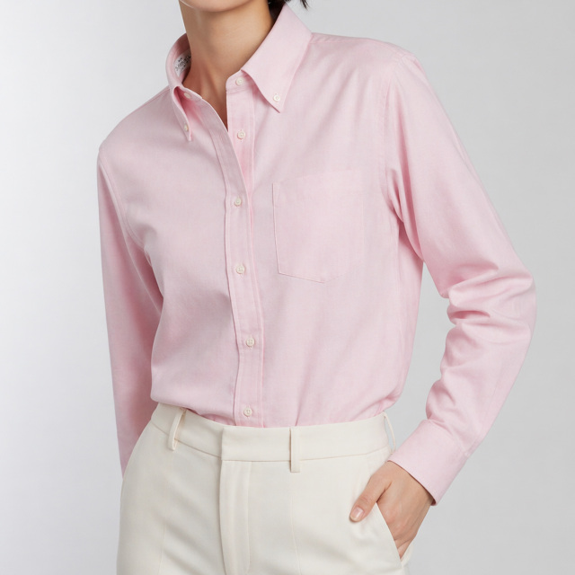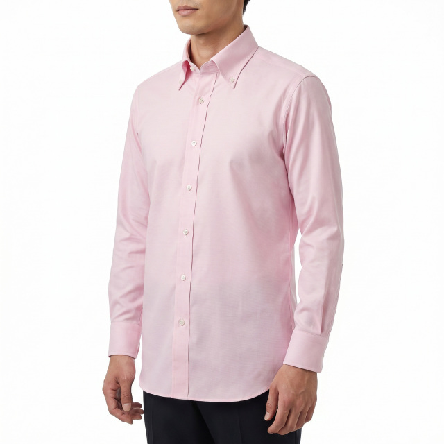 さらっとした着心地でアイロンがかけやすい無地のハケメ。中間色のピンク。GIZA88の品質。ドレスシャツ向き。
