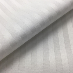 光沢のあるサテン地をベースにしたドビーストライプ(織柄)。ドレスシャツ向き。