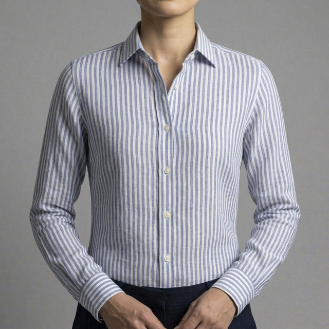 [グランディ&ルビネッリ] 綿65%麻35%ロンドンストライプ-ネイビー #8113