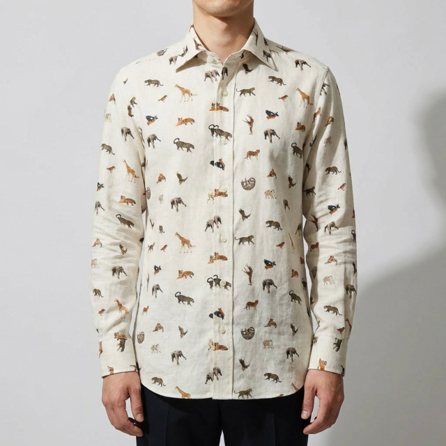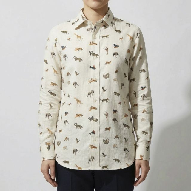 [テクスタ TEXTA] 麻リネン 動物柄プリント #8122