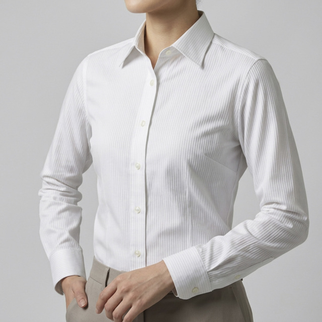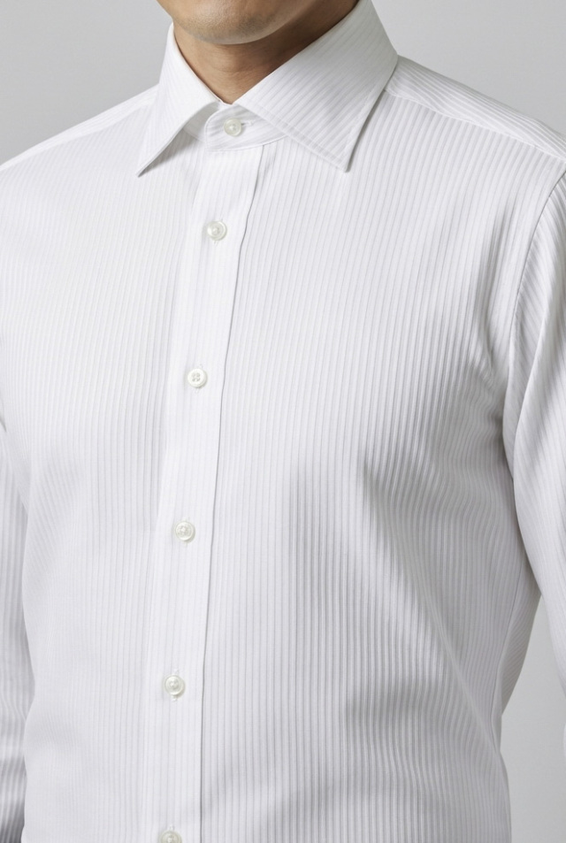 無地でも際立っておしゃれに映る白のドビーストライプ(織柄)。ドレスシャツ向き。