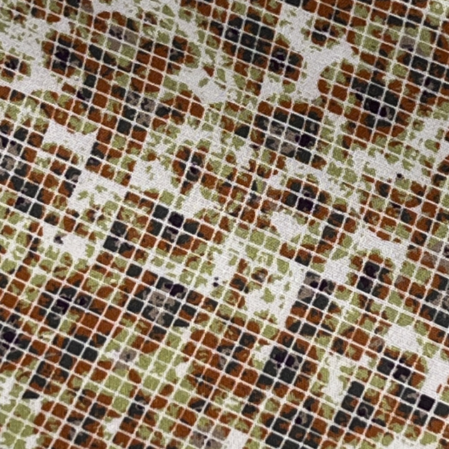 オレンジ系の色合いのまだら模様に白の網目模様