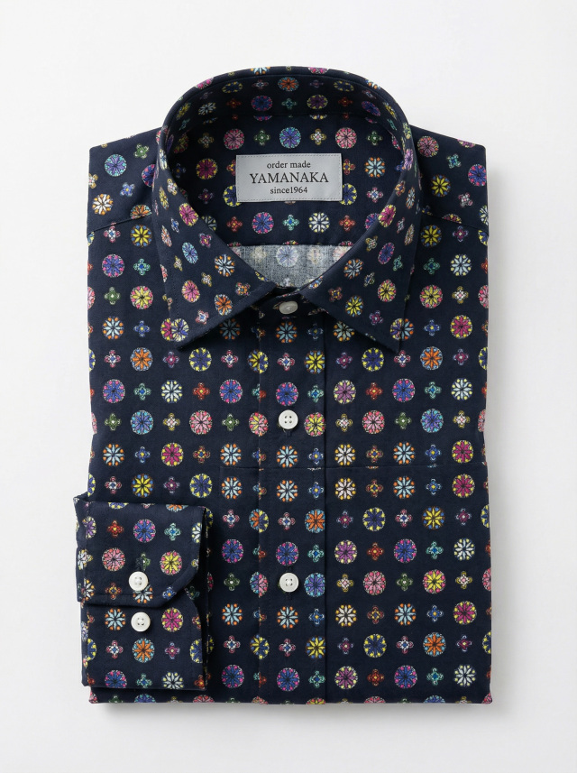 濃紺に、丸いプリント柄