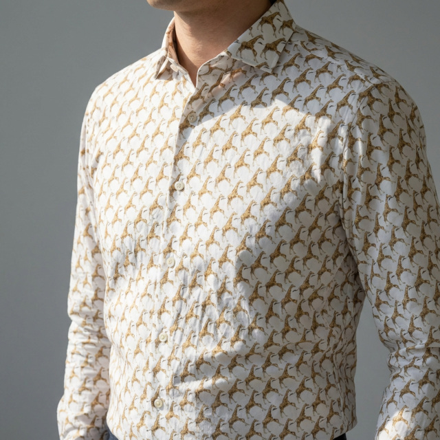 2026年4月5日 / Last updated : 2026年4月5日 shirtsman 新着生地 [テクスタ TEXTA] プリント-キリン柄 #8394 オーダーシャツ出来上がり商品価格 22980円から キリンの柄 シャツ布地スペック ブランド TEXTA | テクスタ 素材 綿100% 原産地 イタリア 糸番手 100番双糸 主用途(スタイル) カジュアルシャツ用の生地 スーツやジャケット、パンツとの相性 ジャケットパンツ ジーンズ メンズ、レディースシャツとの相性 メンズシャツ&レディースシャツ向き 透け感 透け感ほんのわずか 柔らかさ 普通の柔らかさ 6( 10段階) 生地厚 普通の厚み 6( 10段階) 推奨季節 オールシーズン着られるシャツ 評価10段階 レベル8 世界的に価値が高いシャツ生地 安心の第三者認証 [texta]