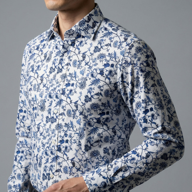 2026年4月5日 / Last updated : 2026年4月5日 shirtsman 新着生地 [テクスタ TEXTA] プリント-花柄 #8396 オーダーシャツ出来上がり商品価格 22980円から ネイビーの花柄 シャツ布地スペック ブランド TEXTA | テクスタ 素材 綿100% 原産地 イタリア 糸番手 100番双糸 主用途(スタイル) カジュアルシャツ用の生地 スーツやジャケット、パンツとの相性 ジャケットパンツ ジーンズ メンズ、レディースシャツとの相性 メンズシャツ&レディースシャツ向き 透け感 透け感ほんのわずか 柔らかさ 普通の柔らかさ 6( 10段階) 生地厚 普通の厚み 6( 10段階) 推奨季節 オールシーズン着られるシャツ 評価10段階 レベル8 世界的に価値が高いシャツ生地 安心の第三者認証 [texta]