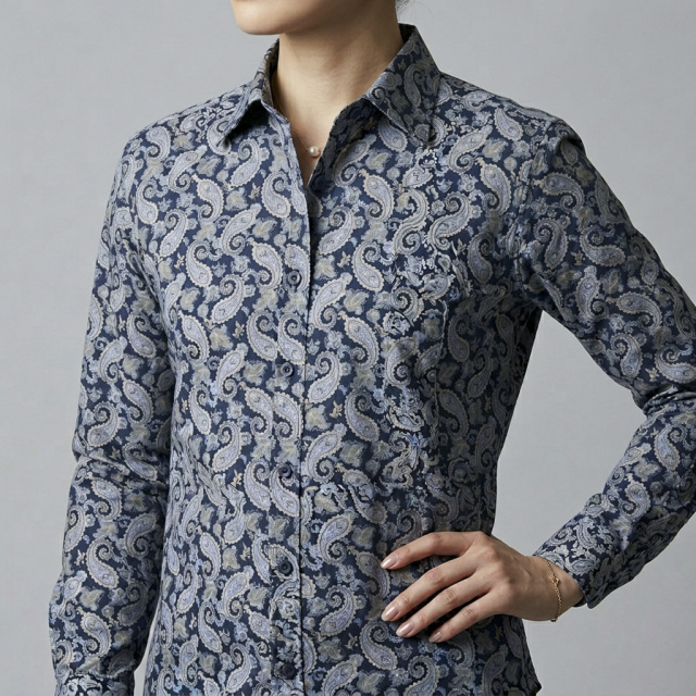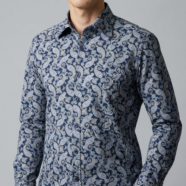ネイビーのペーズリー柄