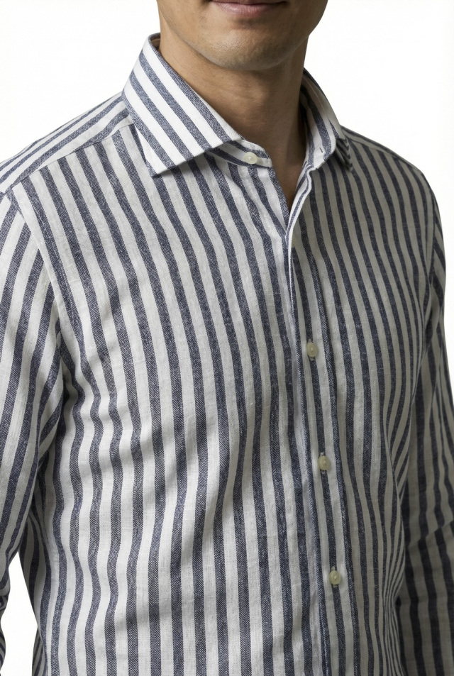 [バセッティ] 麻リネンストライプ-ネイビー #8434