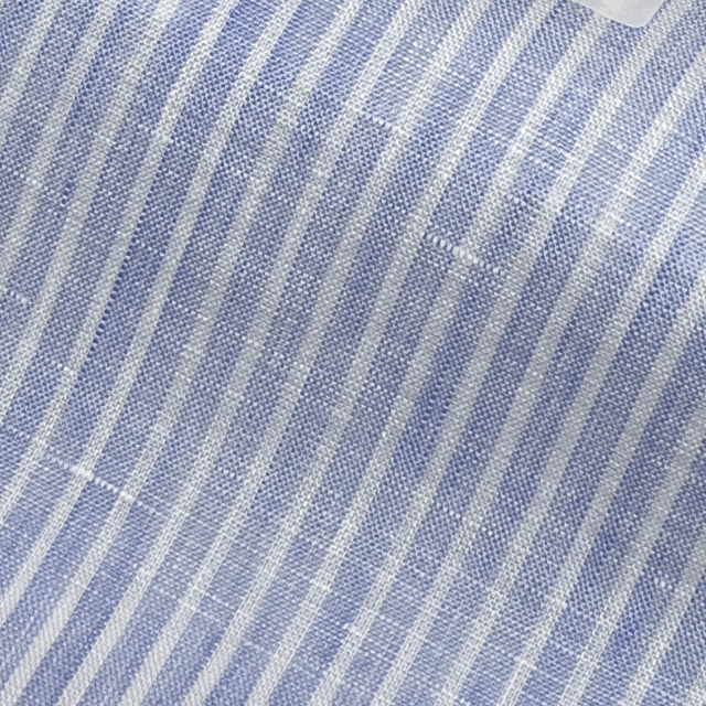 麻リネン100%のサックスのストライプ生地。