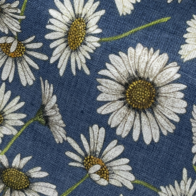 [TEXTA テクスタ] 麻プリント花柄-ブルー×ホワイト #8446