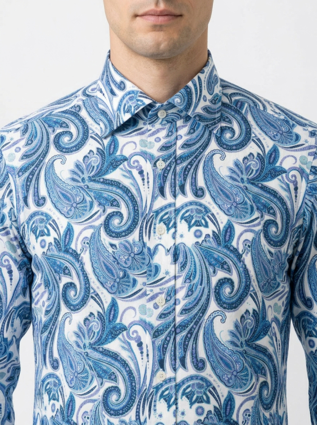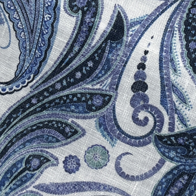 [TEXTA テクスタ] 麻プリントペーズリー・ブルー #8447