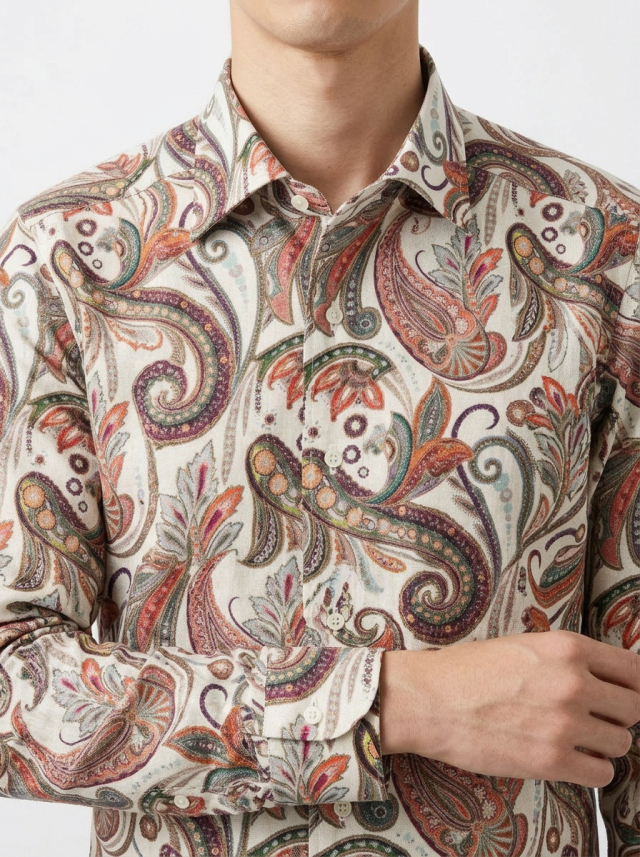 [TEXTA テクスタ] 麻プリントペーズリー・ベージュ系 #8448